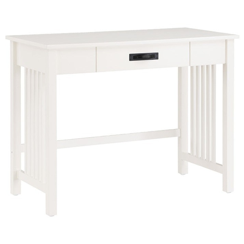 The OSP Designs Sierra Mission Writing Desk is the perfect addition to any sophisticated and exclusive home dcor. With its solid and engineered wood construction, “Mission” style side panels, and pull-out drawer with a metal handle, this desk exudes elegance and functionality. Available in Ash or White finish, this desk complements transitional, urban, contemporary, or cosmopolitan styles. Make a statement with this affordable and easy to assemble writing desk. Intended for residential use only.