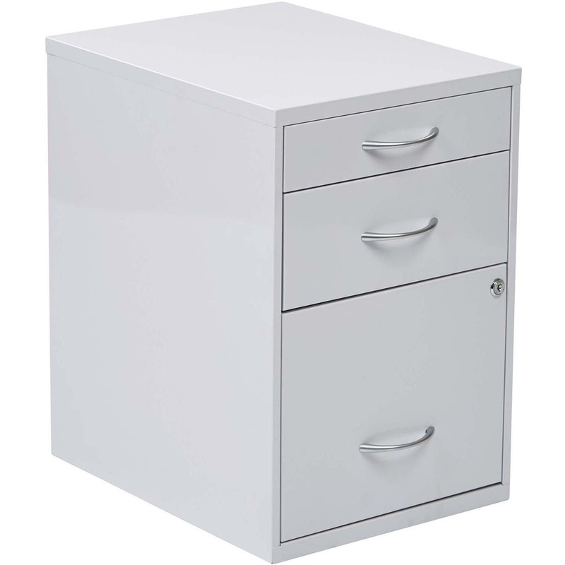 Features:Pencil Drawer, Standard and File Drawers (Letter/Legal)Random Keyed LocksFully Assembled Intended for Residential Use OnlyOuter Materials: Cold Rolled Steel Fabric: Finish: WhiteDimensions: Overall: 14.5"W x 18.25"D x 21.25"HWeight Capacity: 20Ass