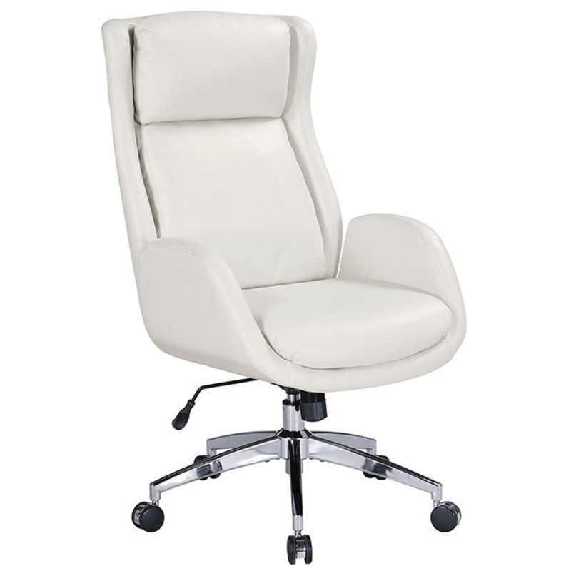 Upgrade your home office with the perfect blend of style and functionality. This expertly designed office chair boasts luxury and quality with an integrated padded headrest, plush seat cushion, and padded armrests for ultimate comfort. Its 360 swivel allows for easy movement around your desk, while the adjustable seat height and knee tilt tension ensure personalized positioning. The chair’s polished metal star-base and burnished dual-wheel carpet casters add durability and a touch of elegance to any workspace. With white, black and nutmeg faux leather options, you can easily create a high-end looking office for a reasonable price. Don’t sacrifice comfort for aesthetics – this chair offers the best of both worlds.