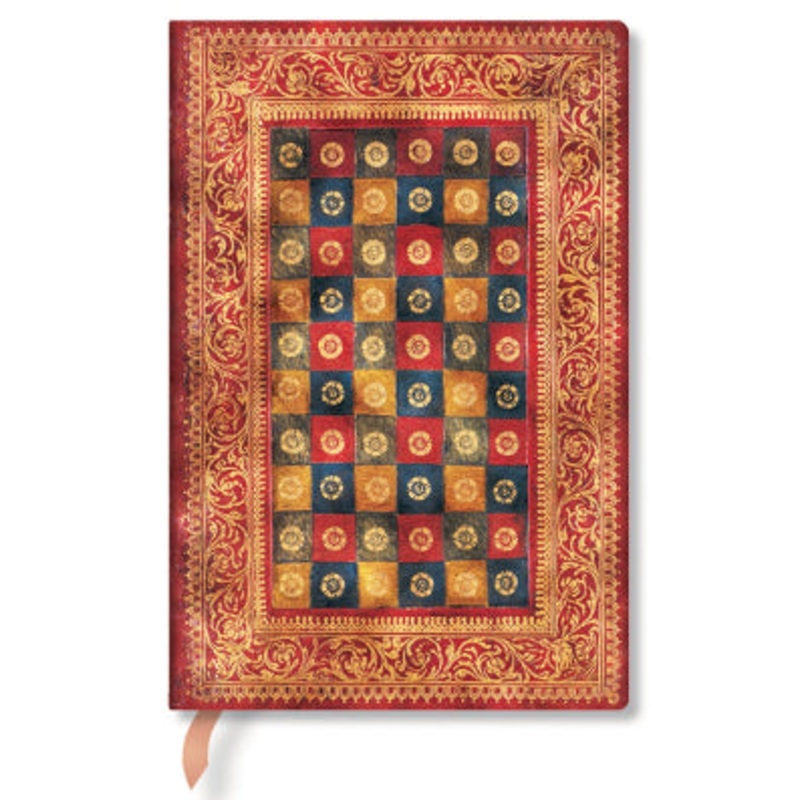Paperblanks Venetian Mornings Fiamma Mini Unlined JournalCapturing First LightThis stunning designed is inspired by a Renaissance binding for a book called The Treatise on Colours. The original design dates back to the early 1600s and was crafted from red