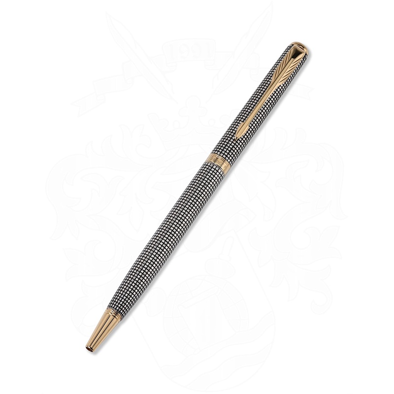 The Parker Sonnet ballpoint pen offers a smooth, clean, and consistent writing experience. This timeless and elegant pen features a retractable twist mechanism and a medium tip. The sterling silver cap and barrel are enhanced by a gold-finished clip and trim. Meticulously hand-assembled and quality-checked, the Sonnet delivers high precision and exceptional writing comfort. The Sonnet represents a refined example of Parker craftsmanship.