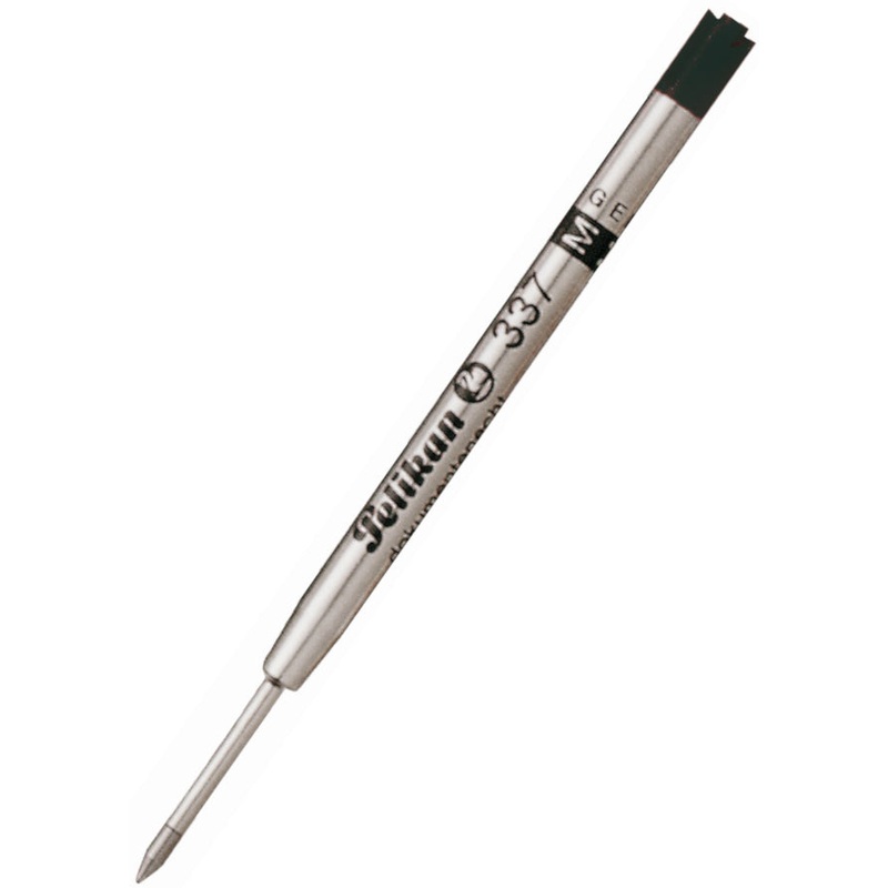 This is a Pelikan giant ballpoint refill, black in colour with a medium 1.0mm tip. The Ball Point Pen Refills 337 have a solid stainless steel tip and a tungsten carbide ball. Available in three different line widths.