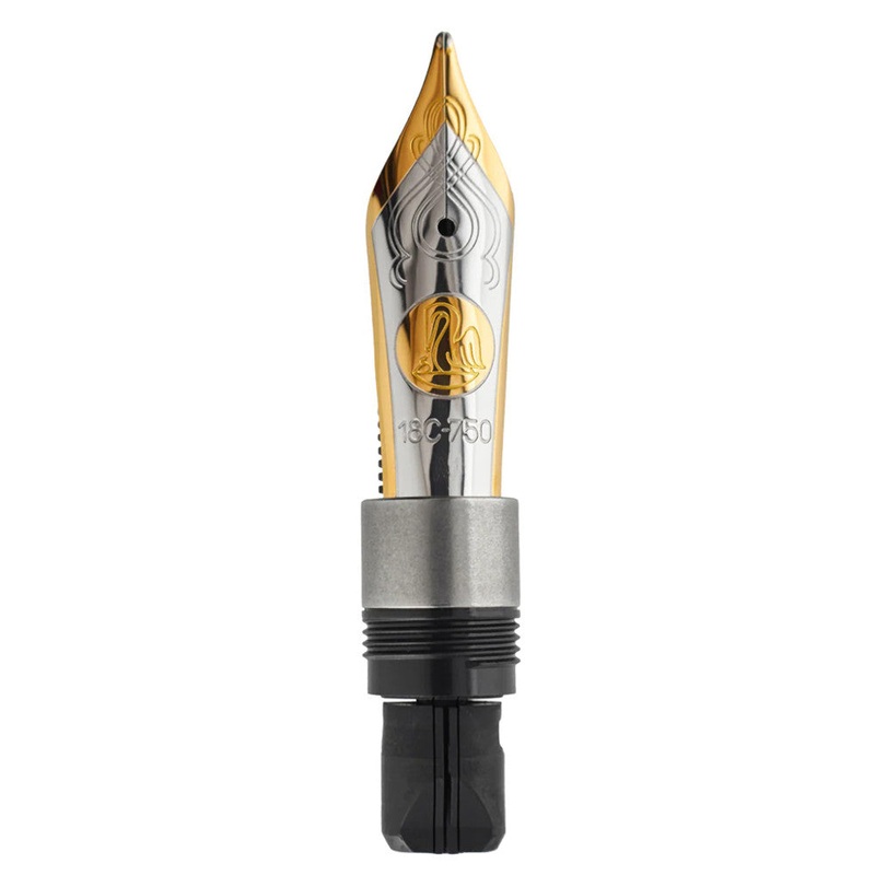 This is a two-tone 18-carat gold nib with rhodium trim for the Pelikan M1000 fountain pen. This is a screw-in – screw out unit, which is incredibly easy to swap into your pen.