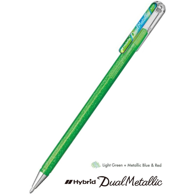 Create shimmering artwork and gift cards bursting with colour! Featuring a mix of coloured ink and metallic sparkles in a variety of subtle and contrasting combinations, the Hybrid Dual Metallic gel pen unleashes a range of unique shades with every stroke, depending on the colour of the paper and the angle you view it at. The Dual Metallic’s 1 mm tip provides a smooth, juicy writing experience, and the gel ink is acid-free and scrapbook safe.Shades and sparkles of light green, metallic blue and red