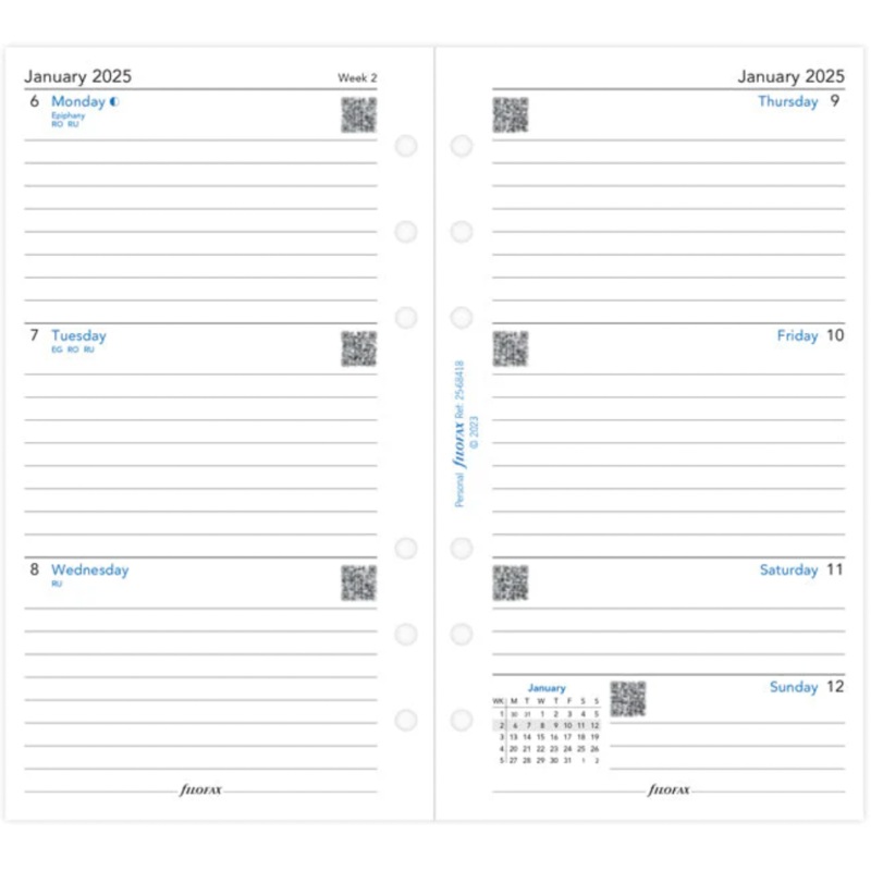 Organize your week at a glance with this personal week on two pages diary, in five languages.Multilanguage: English, French, German, Dutch & Italian80gsm white fountain pen friendly papercompatible with Filofax Personal size Organizers & ClipbookReminder A