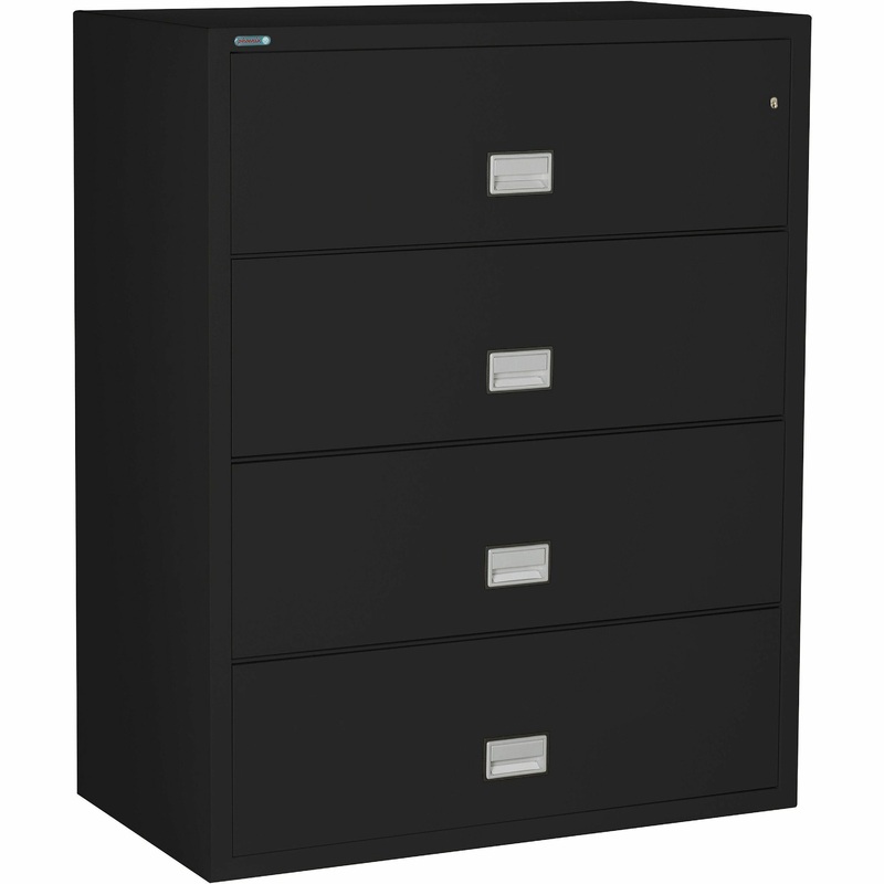 World Class Lateral File combines powerful protection and heavy-duty storage to meet your filing needs. Fire-resistant feature outlasts the harshest flames up to 1 hour. Individual drawer insulation prevents closed drawers from fire if one is left open. It also resists explosions up to 2000 degrees Fahrenheit and survives drops up to 30′. Labyrinth sealing system and special gaskets prevent water damage. Lateral file is MTC Grade B rated to protect CDs, DVDs, USBs and memory sticks. Easily access files using recessed drawer pull. Key-operated plunger lock provides security. Customize privacy by locking any drawer. All four drawers are equipped to handle legal-size/letter-size folders from front to back or side to side. Drawers use three-way suspension for stability and feature an anti-tip safety mechanism that prevents opening more than one drawer at a time.