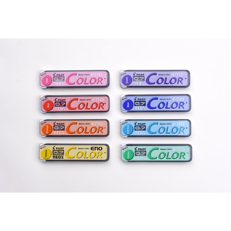 Pilot Color Eno Lead - 0.7mmThese colored pencil leads from Pilot are for 0.7mm mechanical pencils and come in a greatvariety of colors. The colored leads are erasable, and are perfect for highlighting notes, coloring or light sketching.10 pieces per packE