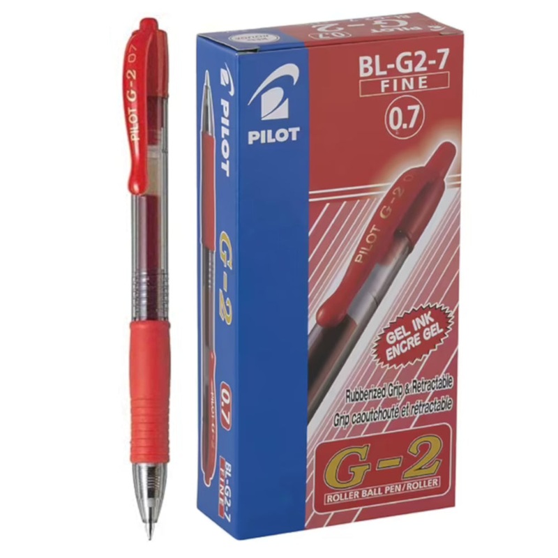 Australia's Go-2 Gel Ink Rollerball Pen in Red - 1 Dozen Box.Currently shipping in a clear acetate box.This red gel rollerball pen features the fine 0.7mm tip for everyday writing.Discover the smooth writing and comfortable G-2, Australia's favourite Gel I