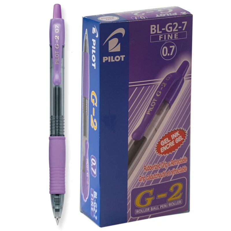 Australia's Go-2 Gel Ink Rollerball Pen in Purple - 1 Dozen Box.This purple gel rollerball pen features the fine 0.7mm tip for everyday writing.Discover the smooth writing and comfortable G-2, Australia's favourite Gel Ink Rollerball Pen. The Pilot G-2 gel