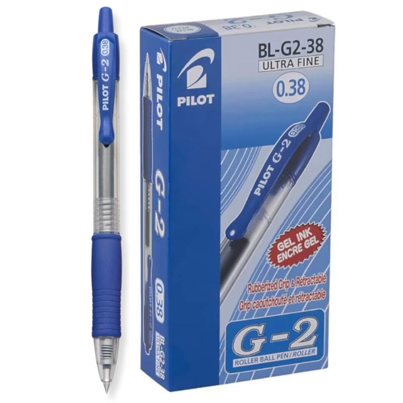 Australia's Go-2 Gel Ink Rollerball Pen in Blue - 1 Dozen Box.This blue gel rollerball pen features the ultra-fine 0.38mm tip for everyday writing.Discover the smooth writing and comfortable G-2, Australia's favourite Gel Ink Rollerball Pen. The Pilot G-2