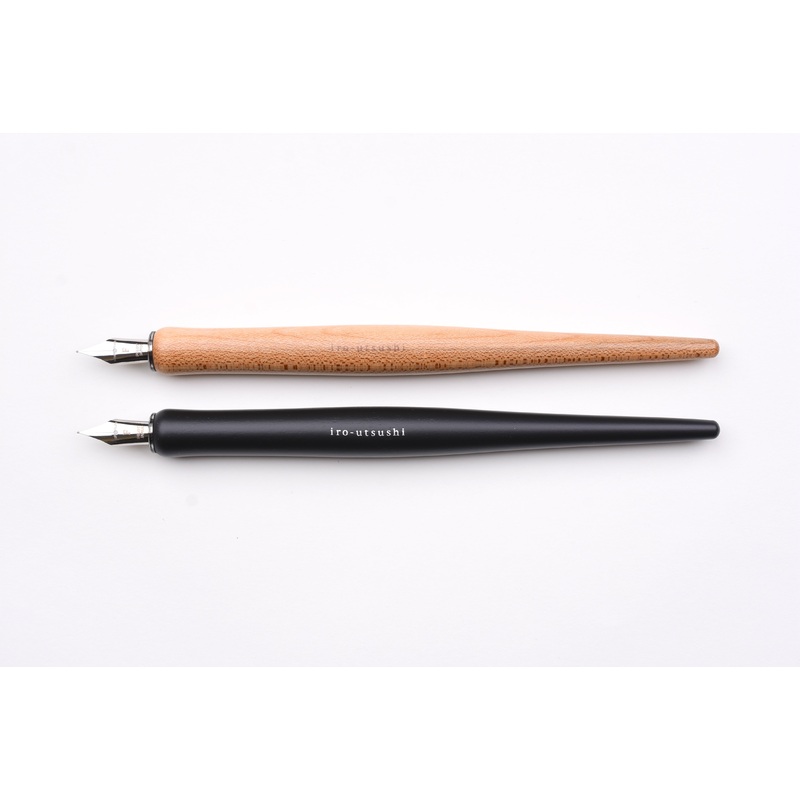 The Pilot iro-utsushi is a dipping pen with a non-removablestainless steel nib. The pen comes with awoodenholderand the nib already attached to the holder. Unlike many dip pens that have a pointed tip on the nib, the iro-utsushi tip is rounded like a stand