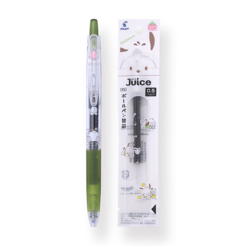 Introducing the Pilot Juice x Sanrio Limited Edition Gel Pen with Refill Set the perfect pen for all Sanrio fans! This 0.5mm Gel Pen features Pochacco, bringing cuteness and fun to your writing every time you click. Each pen comes with a black ink refill,