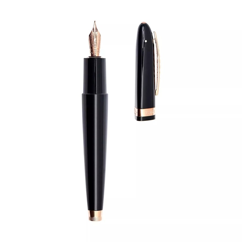Pineider Modern Times Fountain Pen – Black – Rose Gold Trim Fine