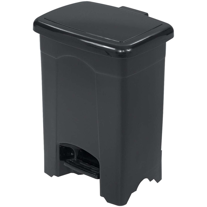 Safco has created a Plastic Step-On Receptacle that is a real space saver. With a four gallon capacity and a lid that closes automatically after each use, this black space-efficient trash can fits perfectly under sinks or desks. It's great for use in the h