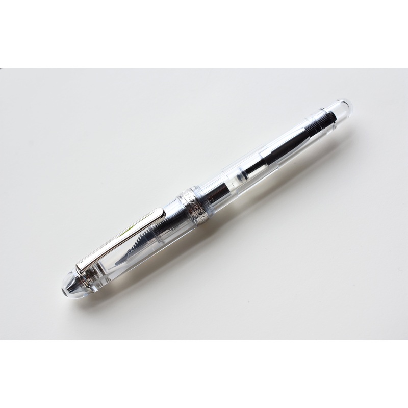 Originally released in 1978, Platinum 3776, is one of Platinum’s iconic penseries and over the years, Platinum has added many colors as well as limited and special editions to the 3776 line. 3776 stands for the height of Mount Fuji, the highest mountain and when it was first released in 1978, it was awarded the “Good Design Prize” by the Japanese government.In 2011, the “Century 3776” series was released in honor of theapproaching 100th anniversary of Platinum and wasdesigned to maintain the quality standards defined by the original 3776 combined with the needs of a modern fountain pen user: new sleek design, comfortable writing balance, and smooth flow. Century 3776 employsPlatinum’s own “Slip and Seal Mechanism” that employs a spring in the cap to force an air tight closure around the nib, thus preventing ink from drying out in this fountain pen for up to a year. Platinum Century 3776 – Oshino is a demonstrator fountain pen with a transparent clear barrel and cap that allows you to see the complete inner workings of this beautiful fountain pen.
