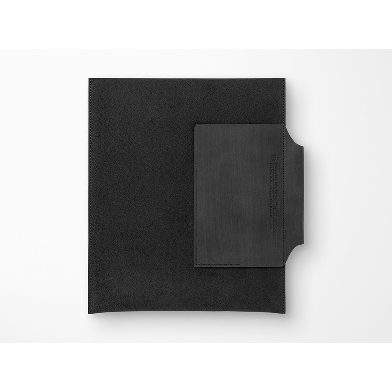 Expand Your PLOTTER Binder's StorageA simple case that allows you to carry essential items such as a PLOTTER Leather Binder, a pen, and digital devices on the go. The case highlights contrasting materials: TORAY Ultrasuede and Horse Hair II Leather. The ca