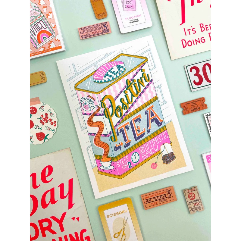 Printed with soy based inks onto paper made from recycled coffee cups that has a natural flecked quality.