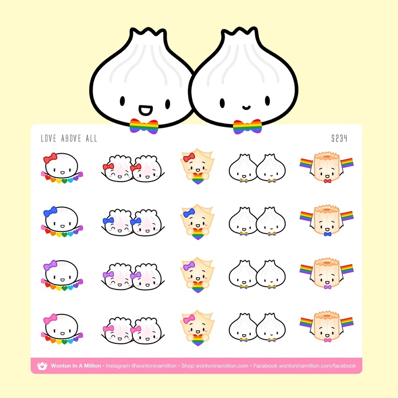 Decorate your planners, scrapbooks, bullet journals and more with this adorable sticker sheet featuring the Shrimp Dumpling family! It’s said that to judge the skill of a dimsum chef, you look at how they’ve made a shrimp dumpling: its skin should be translucent but not break when you pick it up, and the skin shouldn’t stick to the steamer or to the other shrimp dumplings in the basket. Shrimp dumplings are a MUST HAVE at dimsum (and in your sticker collection!)