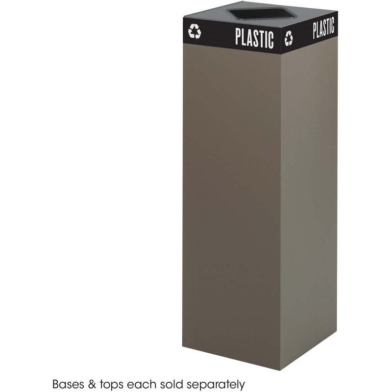 Recycling is easy with the public square brown recycling bin from Safco. Discard cans, bottles and paper products in this environmentally-friendly product designed to hold up to 42 gallons worth of materials. Plastic container bags are securely held in place with wires. Lids are sold separately.