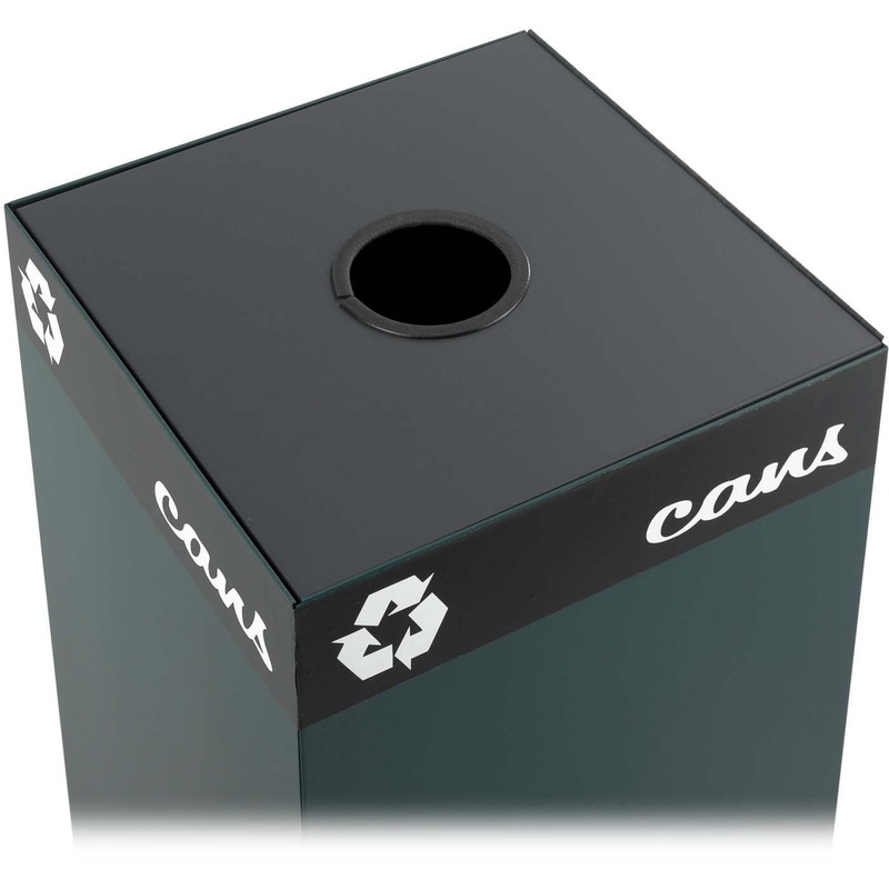 Features:Hinged topsRound lid: cans and glassDecals included to segregate waste and recyclablesSpecifications: Material: SteelColor: BlackAssembly Required: YesTools Required: YesGreenguard: YesCompartment Type: ItemDecals: IncludedFinished Product Dimensi