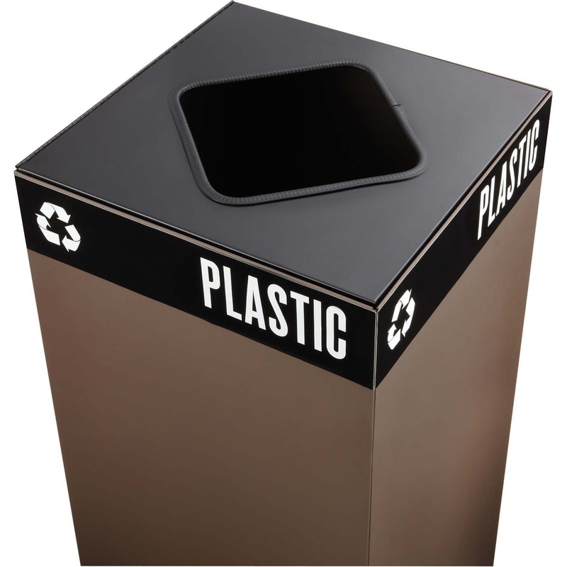 Features:Hinged topsSquare lid: plastic and wasteDecals included to segregate waste and recycleablesSpecifications: Material: SteelColor: BlackAssembly Required: YesTools Required: YesGreenguard: YesCompartment Type: ItemDecals: IncludedFinished Product Di