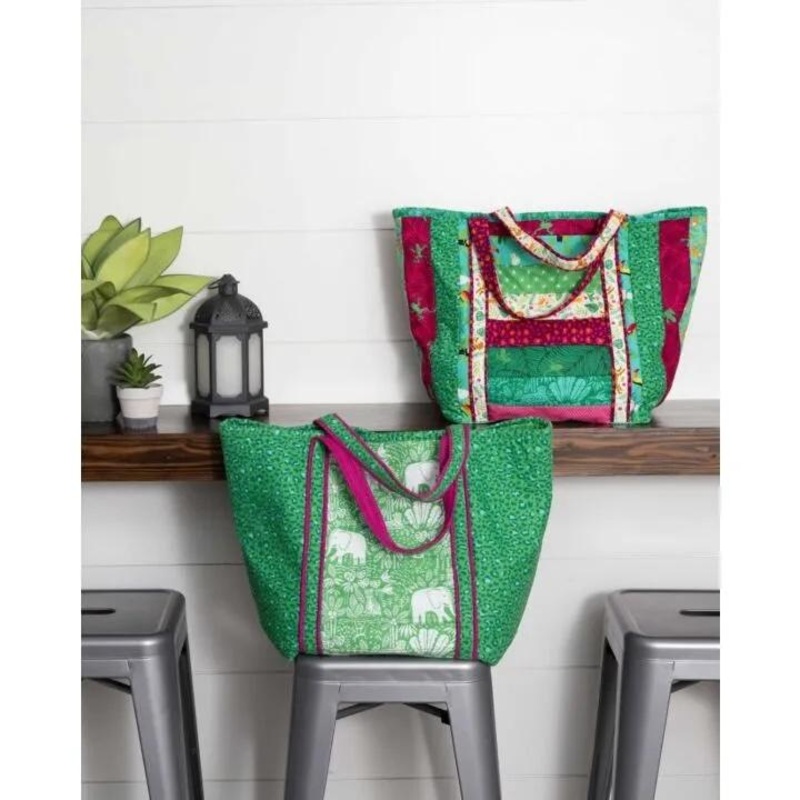 This large-capacity tote is great for all kinds of shopping! The pattern is printed on batting and has instructions for two different fabric layouts. Use 2-1/2 strips on the body of the bag for a more quilted look or make some room for applique by using th