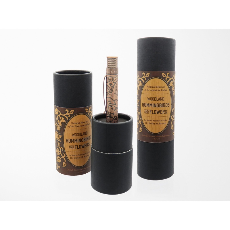 This Smithsonian collection pen by Retro51 not only writes with the dreamy rollerball refill, but it also has a hummingbird design acid-etched onto the barrel and then plated in stonewashed copper with accents to match. The Smithsonian top ring is engraved with its individual number and then complete with the sun logo on the finial. Each rollerball is packaged in a commemorative tube that will store the pen when it is not in use.