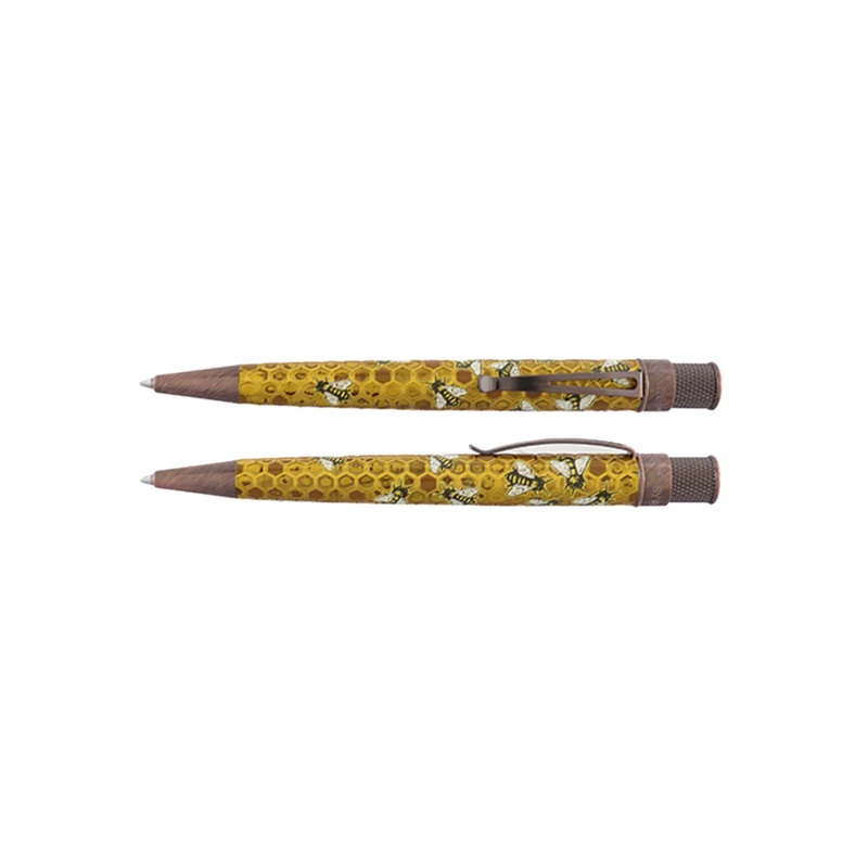 "Buzz" Honeybee Ballpoint Pen"Buzz" has an acid-etched honeycomb texture with printed bees and antique copper accents with a donation given to theNW Honey Bee Habitat Restorationwith each pen sold.This collection of twist-top ballpoint pens gives back with