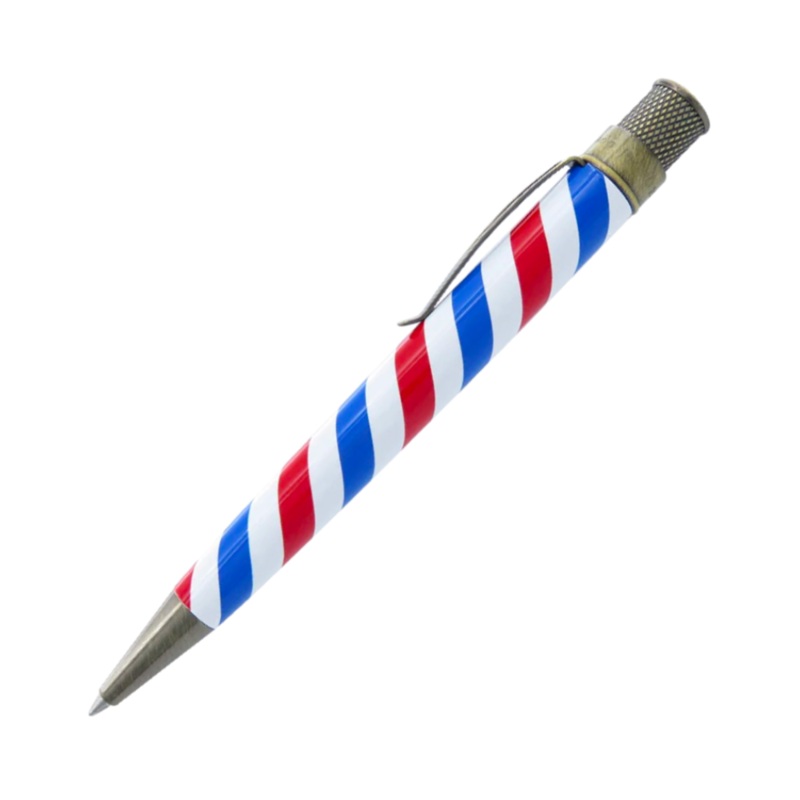 Introducing Brutus,the classic printed barber pole design featuring antique brass trim. It’s topped with a beautifully groomed top disc and packaged in a matching tube. Brutus is tough, stylish and sharp as a razor.