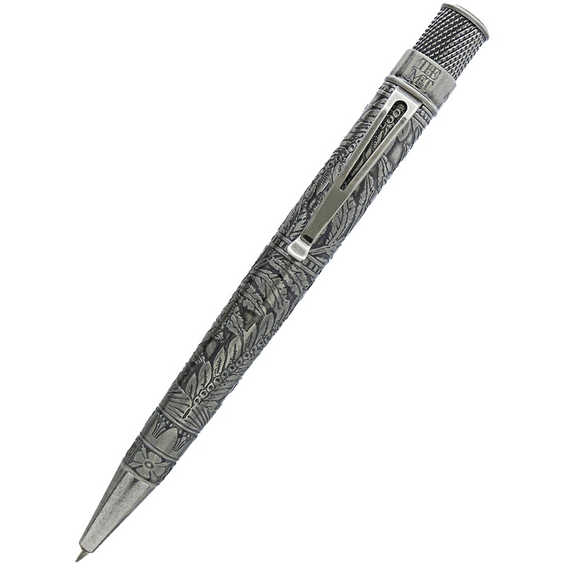 This acid-etched Tornado pen barrel reinterprets the pitchers decorations. You will be able to feel the fine details of the garlands, dahlias, lotus flowers, and other exotic vegetation featured on The Mets vessel when you hold this pen in hand. It has been finished with a stonewashed pewter to reflect the original patinated silver. The accents are in a matching pewter finish that showcases The Met logo plus the numbered engraving of this smooth rollerball refill. Each pen is packaged in a commemorative Met tube that doubles as a pen stand or carrying case when not in use, and includes a small informative print inside. Whatever the occasion, treat a loved one or yourself to this beautiful Retro51 pen.