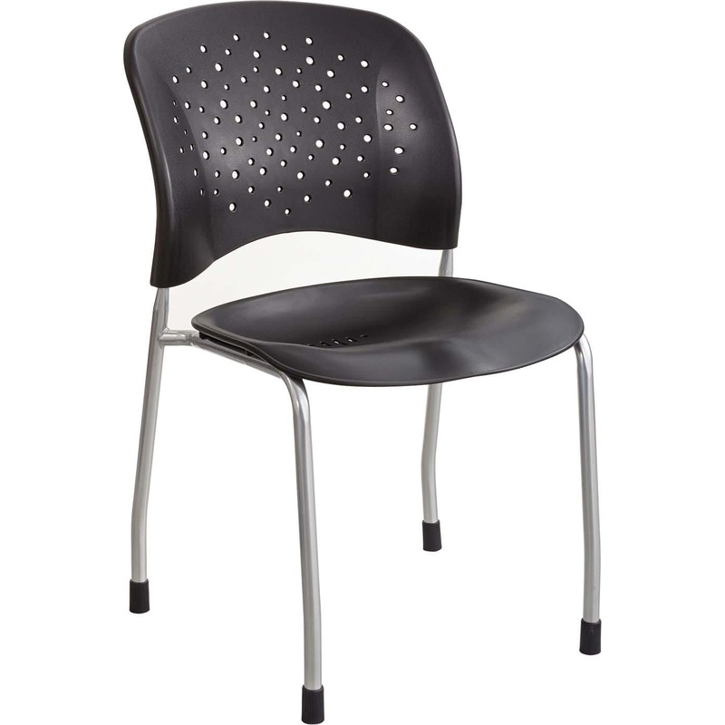 Features:Guest ChairRound backSilver frameStraight Leg chair with glidesGuest chairs stack up to six chairs high with straight legsSpecifications: Color: VariousAssembly Required: NoGreenguard: YesBack Size: 18"W x 13 "HCapacity Weight: 250 lbs.Compartment