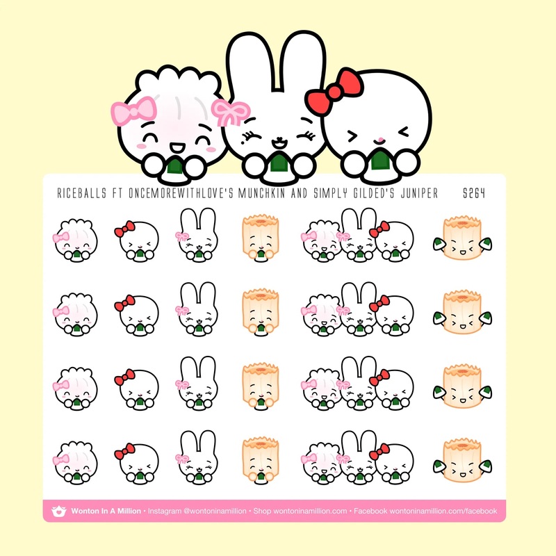 Decorate your planners, scrapbooks, bullet journals and more with this adorable sticker sheet featuring the Shrimp Dumpling family! It’s said that to judge the skill of a dimsum chef, you look at how they’ve made a shrimp dumpling: its skin should be translucent but not break when you pick it up, and the skin shouldn’t stick to the steamer or to the other shrimp dumplings in the basket. Shrimp dumplings are a MUST HAVE at dimsum (and in your sticker collection!)
