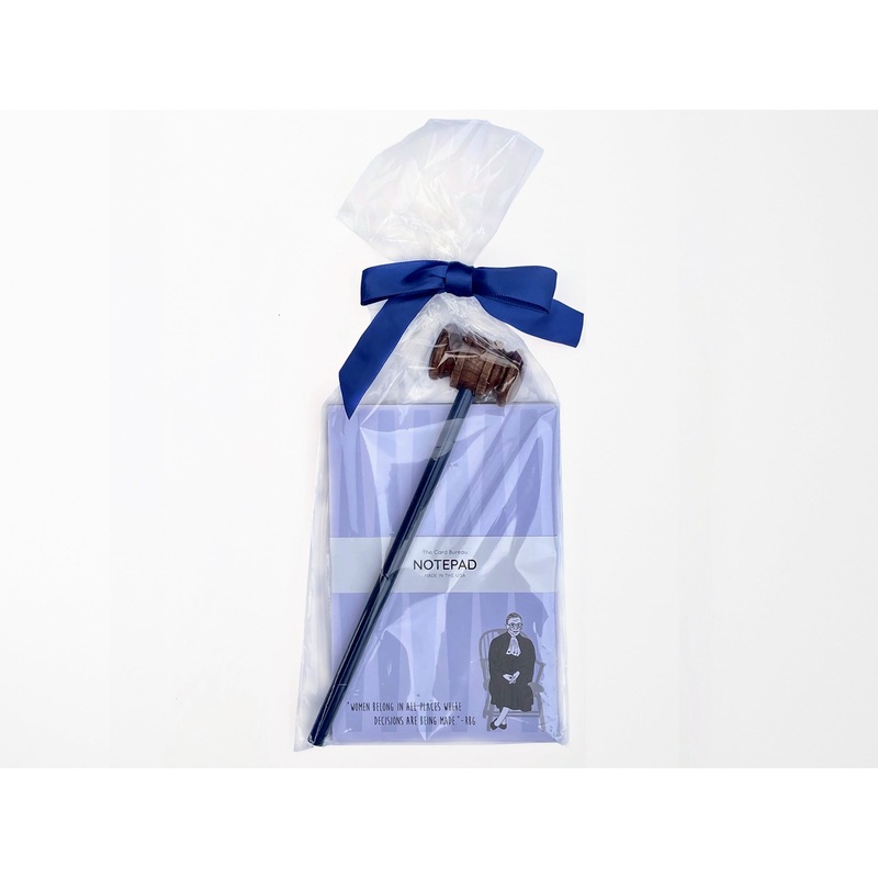 Get more done by writing down your to do list on this RBG notepad. Makes the perfect gift for law school graduation, bar exams, or the holidays. Lawyers are sure to love it.4x6 inch notepad50 sheetsGavel Pencilprotective plastic sleeve with bowOriginal RBG