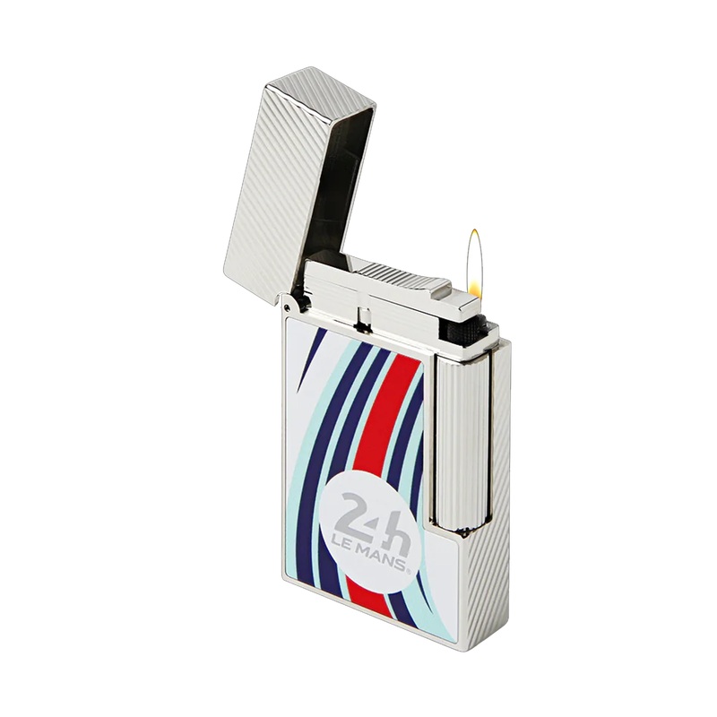 Made from precious materials, the iconic Ligne 2 reinvents motor racing style with this sophisticated and sporty lighter available in three colors. The 24 Hours of Le Mans logo is gold-stamped on the front, and the lucky number 8, the Maisons first address, 8 rue Dieu, is on the back. Gentle and adjustable double flame.