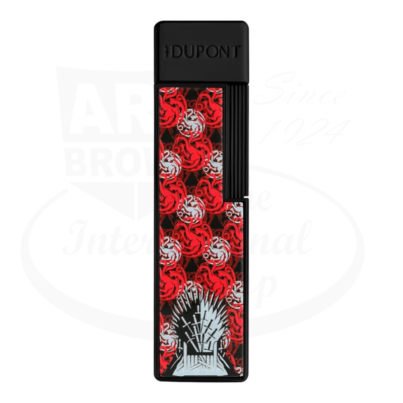 S.T. Duponts Access Collection presents the Targaryen Twiggy lighter, a tribute to House Targaryens power and grandeur. Wrapped in red and black enamel and featuring the house's legendary dragon, this lighter is designed with precision and artistry. The co