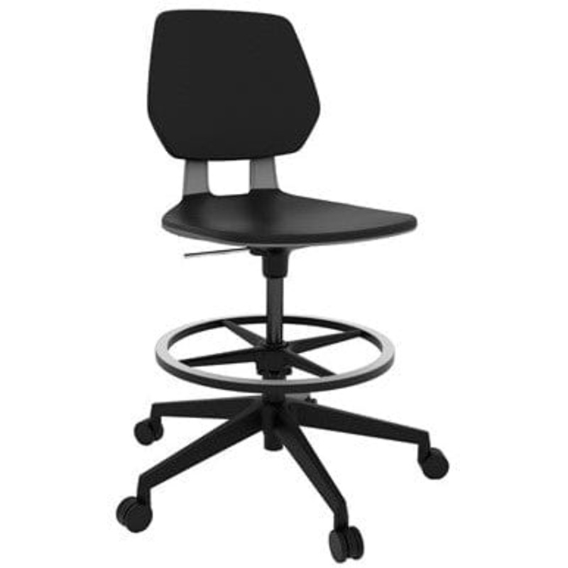 The Safco Commute Petite Drafting Chair (Model# 7827BL) is the perfect blend of style and function. This drafting chair is the extended height version of Safco’s contemporary designed Commute task chairs. This chairs narrower frame means it wont take up a lot of space, making it ideal for multiple chairs usedathigh-top tables and desks, labs, counters,and bars. Its hexagonal back shape adds a contemporary design, and with its synchronous-flex and swivel motion, users will be all set for a productive workday.