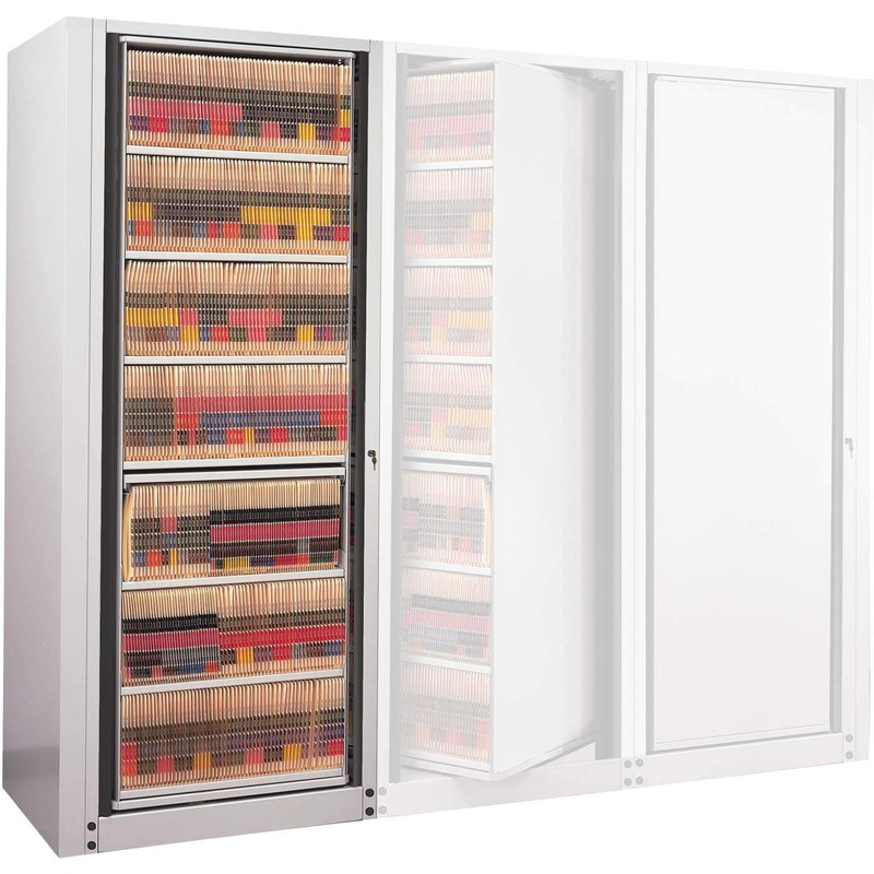 Product Features: Allow 5.25" (letter depth) clearance from wall for rotating carriage.There is a Standard Lock on all of the cabinets.It is ideal for storing color-coded filing.The shelves adjust on 1 1/2"H increments.Adder units attach to either the righ