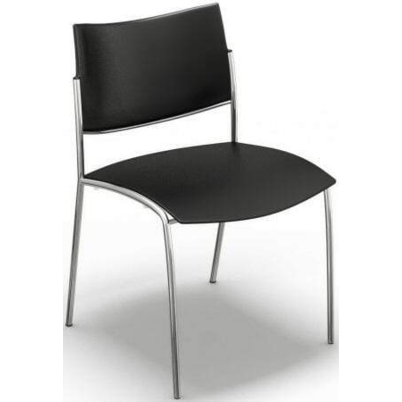 The Mayline Escalate series of contemporary stacking chairs feature a durable plastic seat shell that is lightweight for easy set-up, transport, and storage. Features: Contoured plastic seat and backrest shellTubular steel frame and legs with a brilliant c