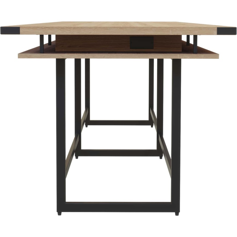 Mirella Conference Table, Standing-Height, 16 features a contemporary design that provides a residential look, complemented with Brushed-Silver or Black Powder Coat accents and finishes. Sand Dune and Southern Tobacco laminates come with Black hardware, an