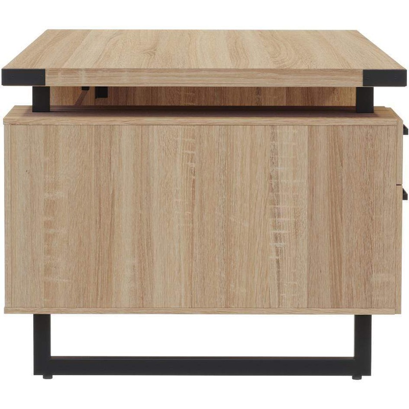 • Complete with double pedestals featuring one with three storage-sized drawers and one with a storage drawer and a file drawer accentuated with discrete brackets giving the appearance of a floating workstation