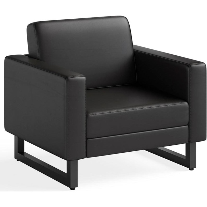 Invite people to take a seat and socialize with colleagues with the comfy Mirella Lounge Chair. The durable, versatile design is an ideal enhancement to complement other Mirella furnishings. The chairs black, gray, and cognac vinyl options and matching legs and feet, will help you shape a fulfilling, collaborative work experience.