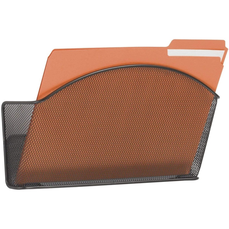 The Onyx Letter-Size Rack is a wall mounted file holder built with a sturdy, steel mesh construction. The file rack features a durable, black powder coat finish. Wall mounting hardware included.