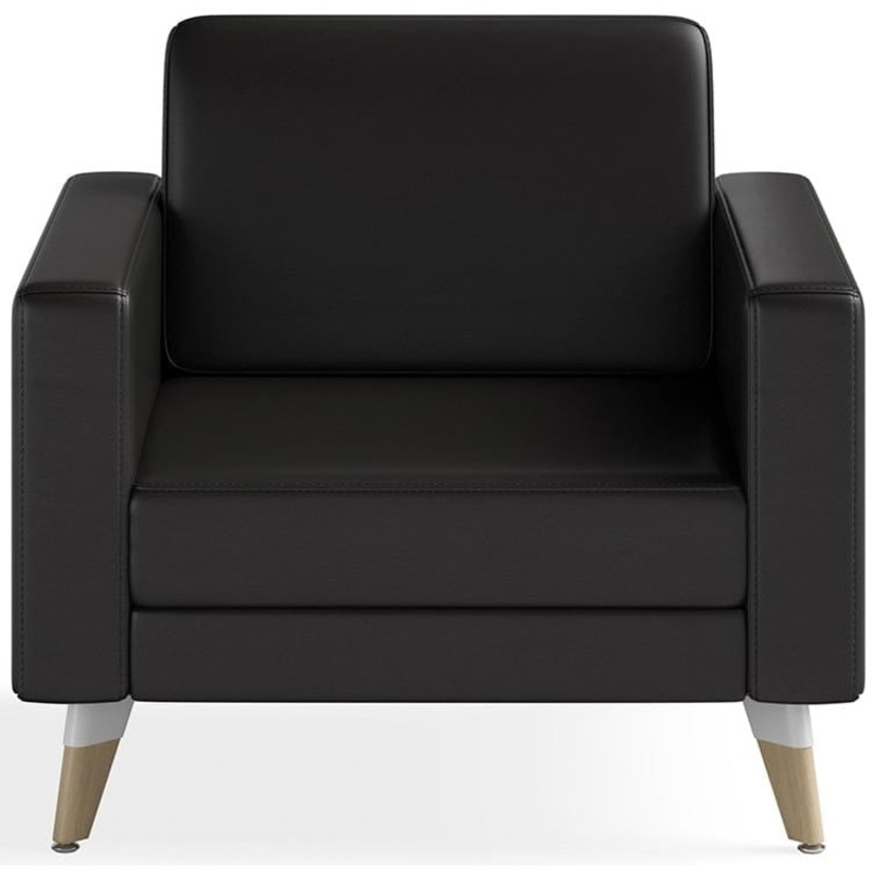 Welcome your colleagues and encourage them to socialize by offering them a comfortable seat on the Resi Lounge Chair. This chair has a durable and versatile design that complements other Resi furnishings. With vinyl options in black, gray, and cognac and matching legs and feet, this chair can help you create a fulfilling and collaborative work experience.