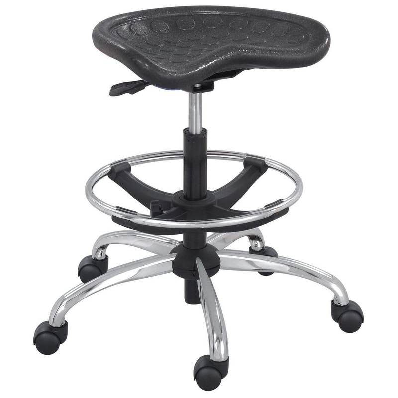 This SitStar series tractor seat stool from Safco features an oversized tractor-shaped seat in black. The seat is PVC-coated and gel molded onto a metal frame for lasting durability and comfort. Features: Supportive height adjustable swivel seating may hel