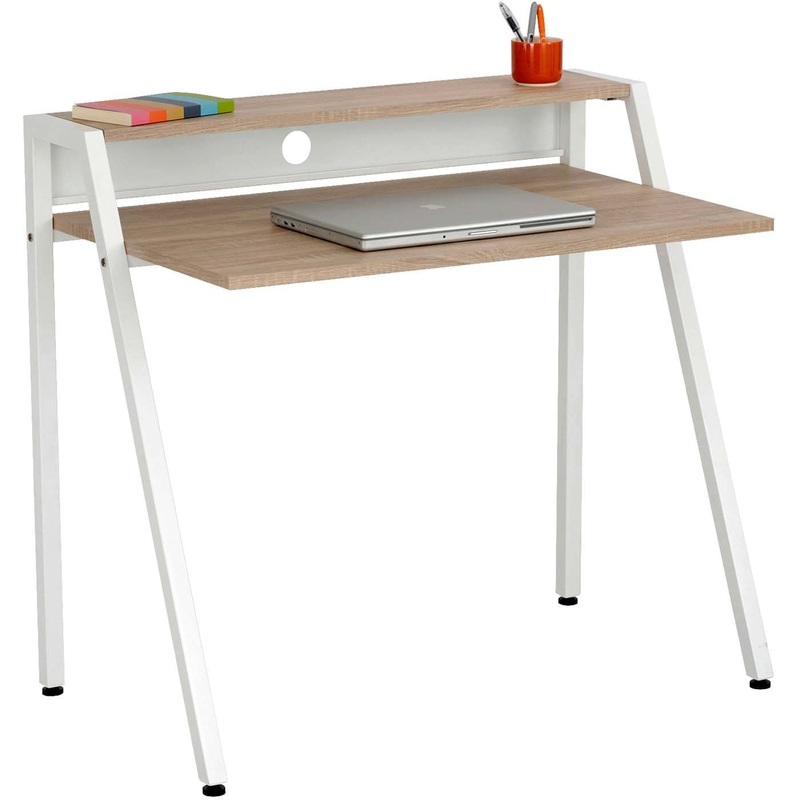 Features:Black frame with wooden veneer top, white frame with laminate topEnables cable managementUpper shelf for additional storageSpecifications: Color: Beech; WhiteAssembly Required: YesCable Management: NoCompartment Type: ItemFinished Product Dimensio