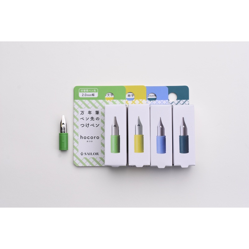 Sailor Hocoro Dip Pen Nibs can be used with Sailor Hocoro Dip Pens. The Hocoro's nib comes housed in a resin sectionthat can be completely pulled out and removed from the pen, allowing you to swap nib units out for another nib size so you canalternate from