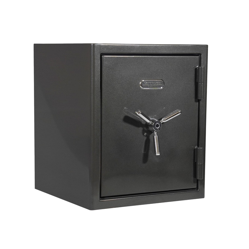 The SA-PLAT3-BIO Sanctuary Platinum Series is the third safe in this series and is everything you and ask for in a safe. It has both fire and water protection to protect your important paperwork and valuables. Sports Afield had this safe tested for 2 hours (120 minutes) at outside temperatures up to 1,800 degrees F. Not only does it have a high fire rating, but it is waterproof for 7 days up to the handle. This means any floods that happen while you are on vacation, your contents are still protected. It also has protection from smoke damage.