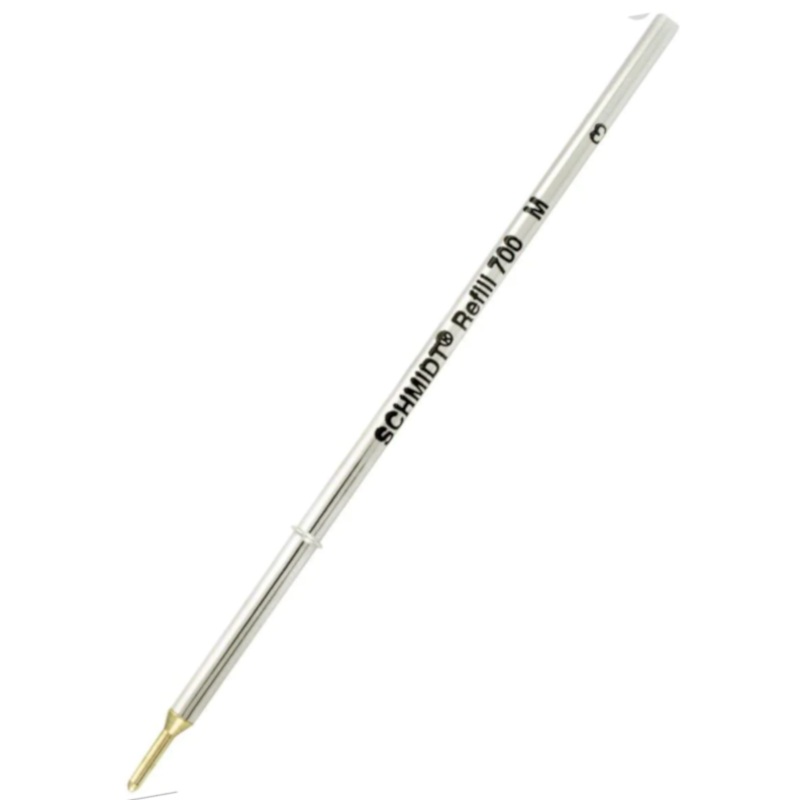 Filled with high-quality ballpoint ink and compatible with a huge selection of pens, the Schmidt S700 is a great choice for a reliable, go-to refill.Medium point widthBlack inkMade in GermanyWidely adopted by many manufacturersSchmidt ManufacturingSchmidt