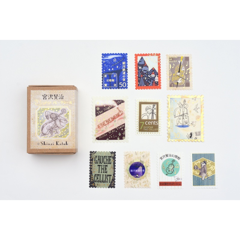 SEAL-DO Gold-Foil Flake Sticker - Gauche the Cellist & Night on the Galactic RailroadThe gold-foil printed flake stickers from SEAL-DO are beautifully designed by Shinzi Katoh. They come in adorable stamp-inspired shapes andinclude 10 designs per set. Each
