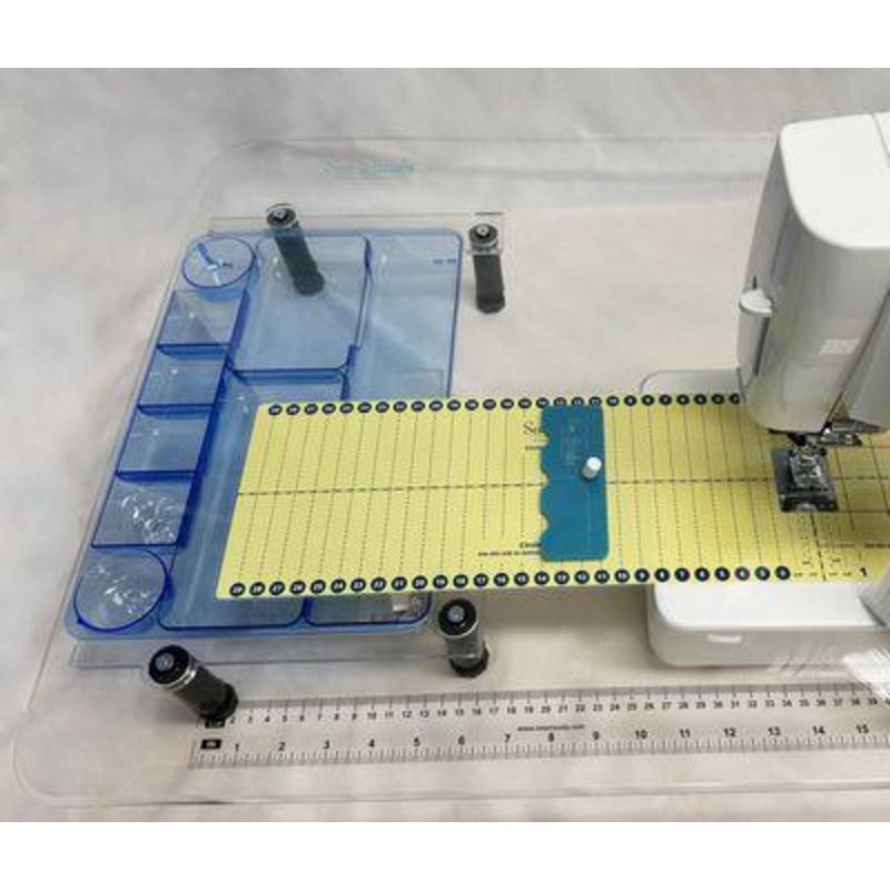 SEW STEADY GIANT WISH BERNINA990 24×32. The Sew Steady Giant Wish 2.0 24in x 32in Table is made of high-quality acrylic and includes several features as requested by quilters and sewers alike. Features include: 3 beveled edges; 9in x 14in blue compartmentalized notions tray, Universal Circles + Straights Tool with Mat, Polish Kit.